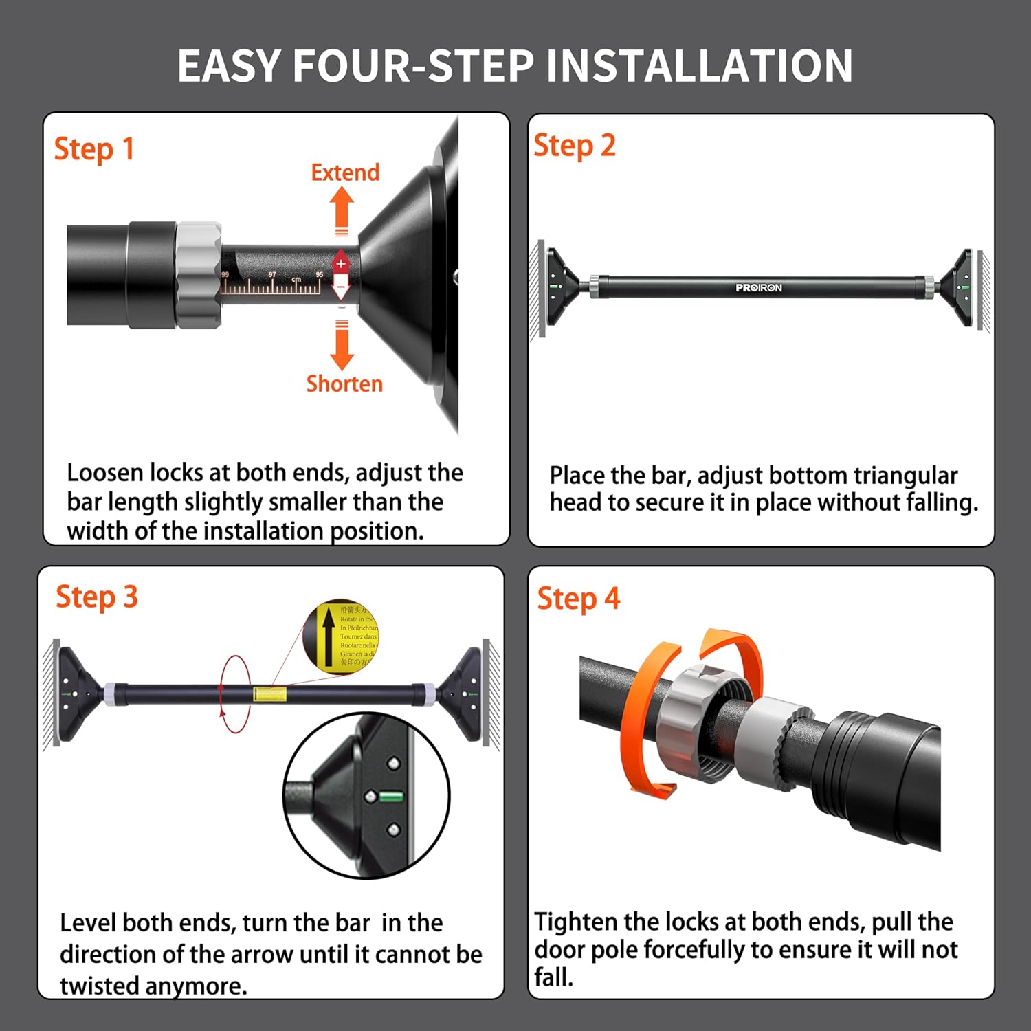 More about this product - Pull Up Bar, No Screw Design, Thick Steel, 440LB Weight Bearing, Length 28.3in-38.2in, Non-Slip